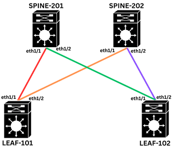 /30Subnets- Example for LEAF-101 (Ethernet1/1) to SPINE-201 (Ethernet1/1): Network:
